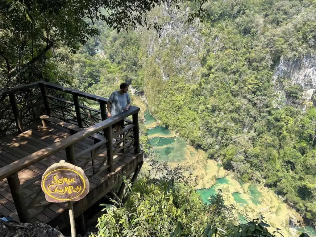 Natural Park Semuc Champey, located deep in the forest is another of the top places to visit in Guatemala. It’s known for it’s natural pools of green and turquoise waters produced by the water falls of the river that cross it and have made Semuc Champey possibly the most beautiful spot in Guatemala. Of course, you must hike to get a bird’s eye view of it (1 hour steep hike) but then you can enjoy the pools below for the day. There aren’t too many options for hostels so I’d book in advance. Zephyr River Lodge or Greengo’s are both really lovely places to hang out. I’d recommend doing an afternoon of caving and waterfall jump. It’s a nice way to do something active and fun and it’s pretty exhilarating!